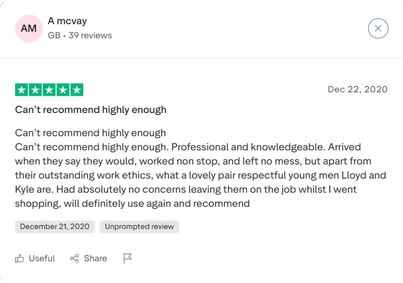 With over 100 five-star Trustpilot reviews, our customers consistently praise our meticulous attention to detail and professional service. No cowboys, no corners cut.